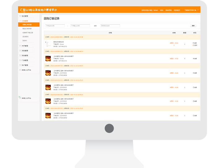 訂單管理(團(tuán)購/商品訂單、到店付、優(yōu)惠券下載記錄