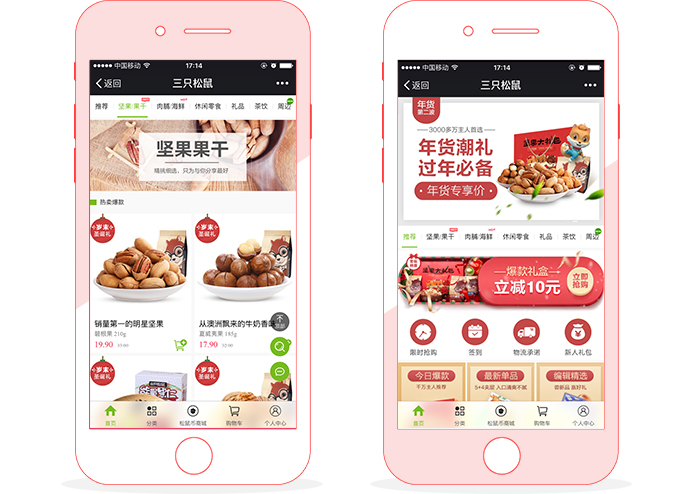 作為知名堅(jiān)果品牌,松鼠商城主要針對(duì)微信用戶。