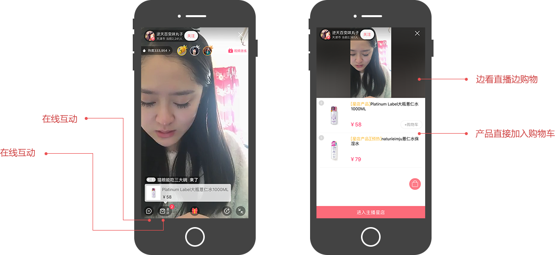 集購物、觀看、打賞、分享于一體,隨時解答用戶問題,紅人主播的平臺增值收益數以千萬計。
